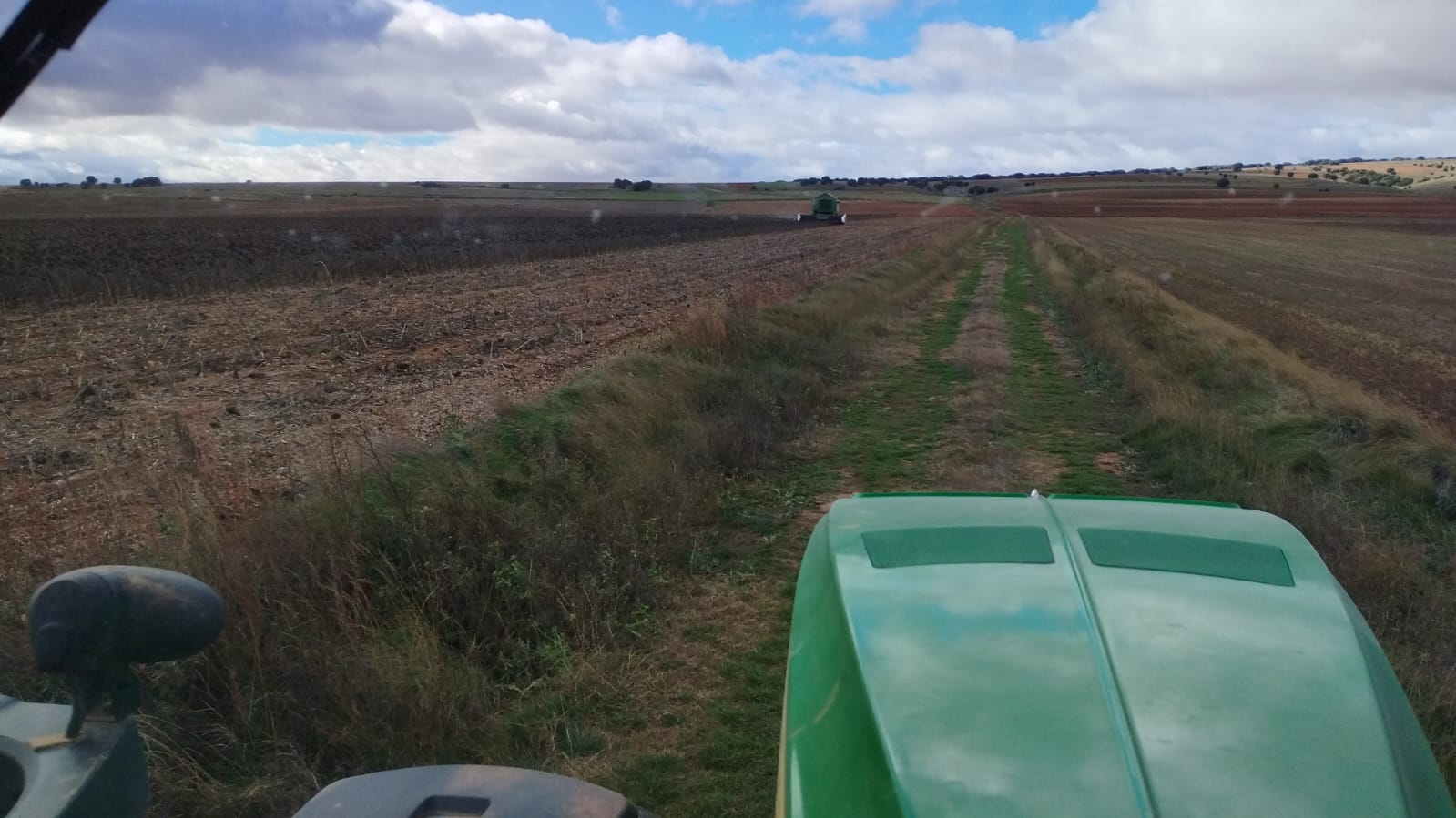 El tiempo anticiclónico está permitiendo meter la maquinaria tan pesada en el campo. Después de muchos días de lluvia, el sol brilla al final.
